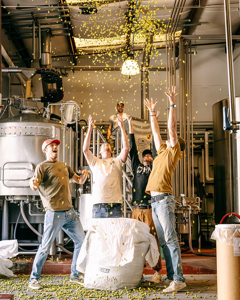 The special October beer releases at Alvarado Street and Green Cheek are products of “Fresh Hops Fly,” our team’s third annual collaboration with family-owned Loftus Ranches, Bale Breaker Brewing Company, and global supplier Yakima Chief Hops.