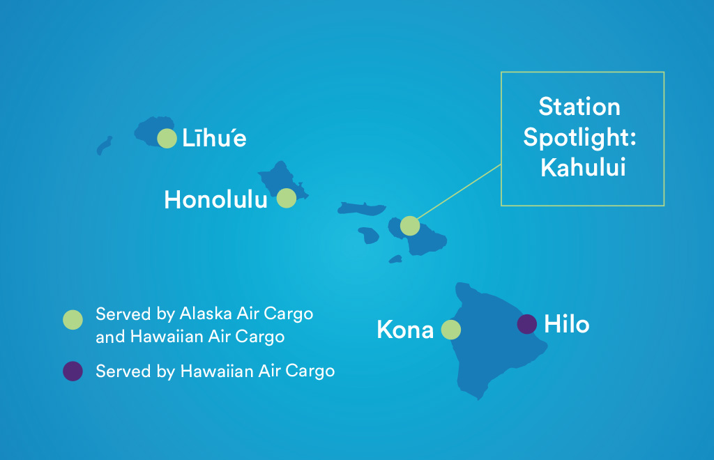 STATION FACT: Hawaiian and Alaska Air Cargo teams have been co-located in Maui since January 2025, creating a single location for customers to drop off and pick up freight, as well as access to 10 nonstop destinations and our global network. Station details.